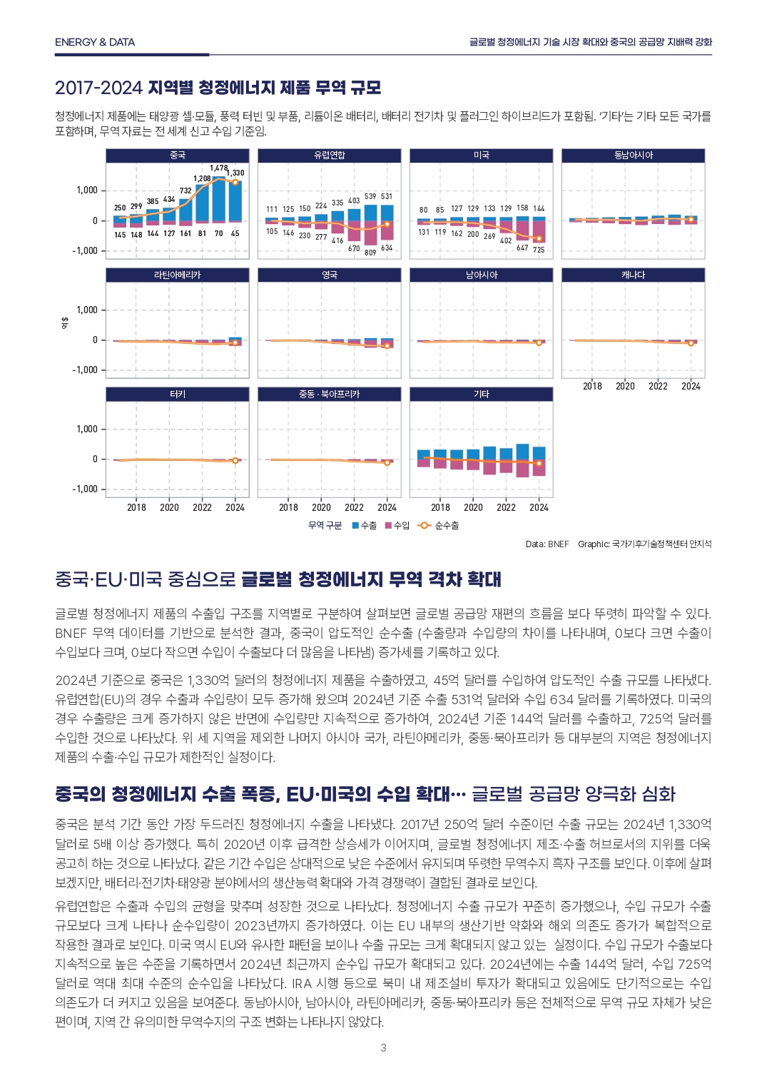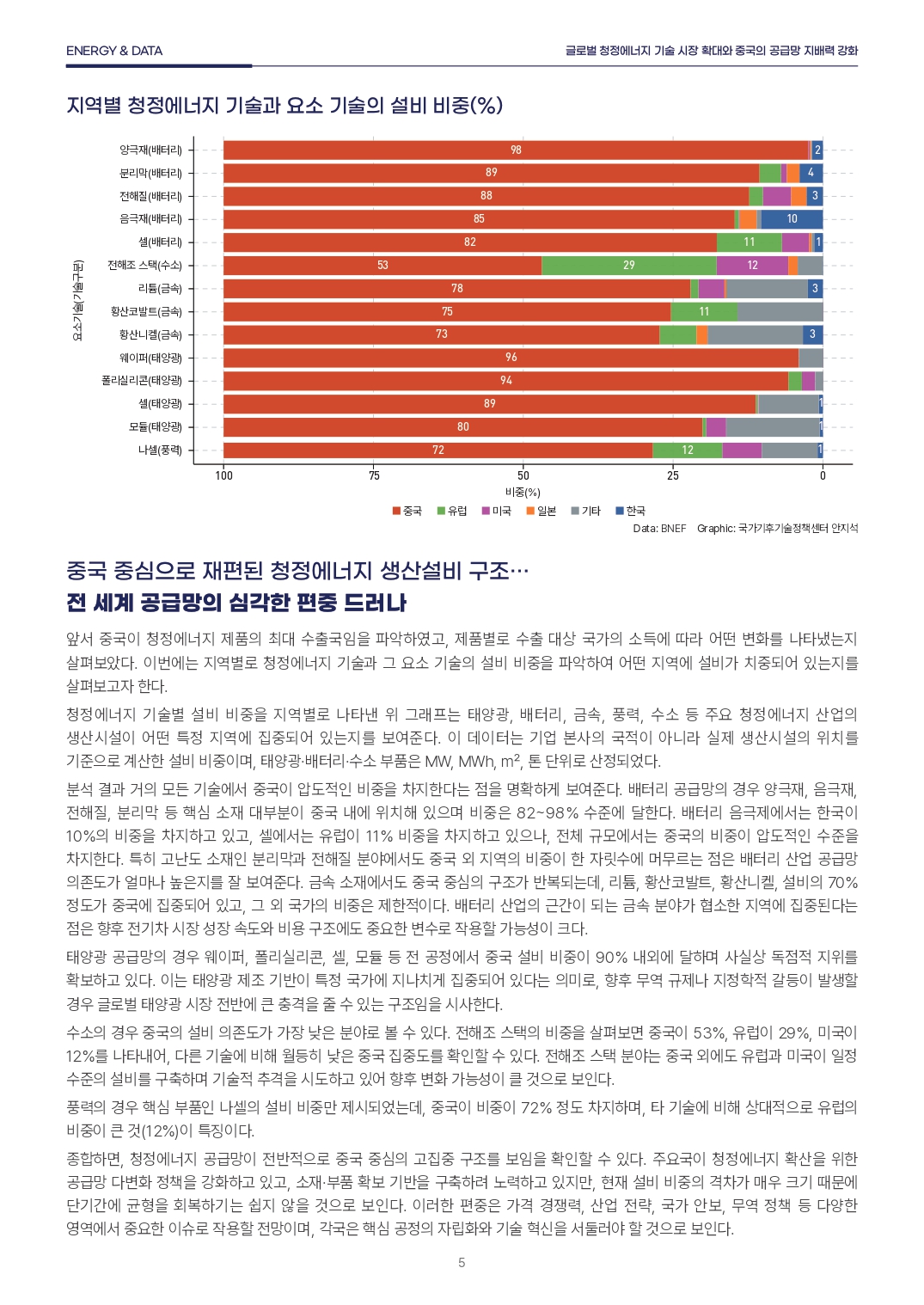 글로벌 청정에너지 기술 시장 확대와 중국의 공급망 지배력 강화